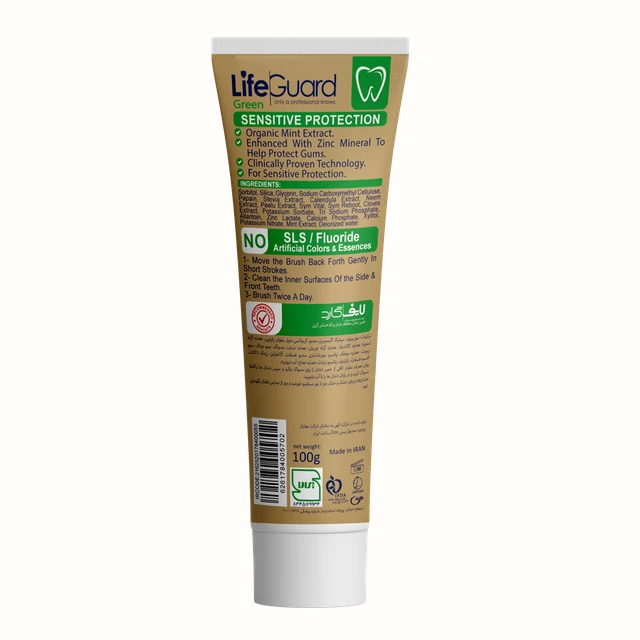 خمیر دندان محافظ دندان و لثه حساس گرین برند لایف گارد با حجم 100 گرم