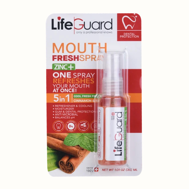 همانطور که میدانید انواع مختلفی از خوشبوکننده دهان وجود دارند، اما برای دریافت بیشترین اثربخشی، میبایست خوشبوکننده دهانی را انتخاب کرد که حاوی ترکیبات فعال ضد میکروبی، ضدالتهاب و کنترلکننده بوی بد دهان باشد و در عین حال کمترین عوارض را برای شما داشته باشد. بعضی از خوشبو کنندههای دهان، اثرات ضد باکتریایی ندارند و صرفاً برای ایجاد احساس خنکی و تازگی در تنفس استفاده میشوند، اما خوشبوکنندههای دهان لایفگارد انتخاب مناسبی برای شما هستند، زیرا خوشبوکنندههای دهان لایف گارد حاوی ترکیباتی مثل زینک، سالوادورا پرسیا بارک رووت اکسترکت، متیل سالیسیلات، عصاره بابونه، عصاره نعناع، عصاره لیمو و عصاره دارچین هستند که با پیشگیری و کنترل رشد میکروبها در دهان علاوه بر اینکه به عنوان خوشبوکننده دهانی و رفع بوی بد دهان بعد از مصرف دخانیات و بعد از صرف غذا کاربرد دارند با عملکرد چندگانه مانند حس خنکی و تازگی، حفظ رطوبت دهان و تنظیم pH دهان موجب بهبود سلامت دهان و دندان میشود و از پوسیدگی دندانها و ایجاد پلاکهای دندانی جلوگیری میکند. همچنین خوشبوکنندههای دهان لایف گارد، یک محصول غیرالکلی است بنابراین این محصول برای همه افراد و سلیقهها قابل استفاده است. خوشبوکنندههای دهان لایفگارد در دو مدل خوشبو کننده دهان نعناع/لیمو و دارچین/نعناع طراحی و فرموله شدهاند که عموماً باعث رفع بوی بد دهان و حس تازگی به صورت اختصاصی در کنترل پوسیدگی و پلاکهای دندانی عمل میکنند و با داشتن ترکیبات فعال ضد التهاب، به درمان بیماریها و التهابات لثه کمک میکنند.