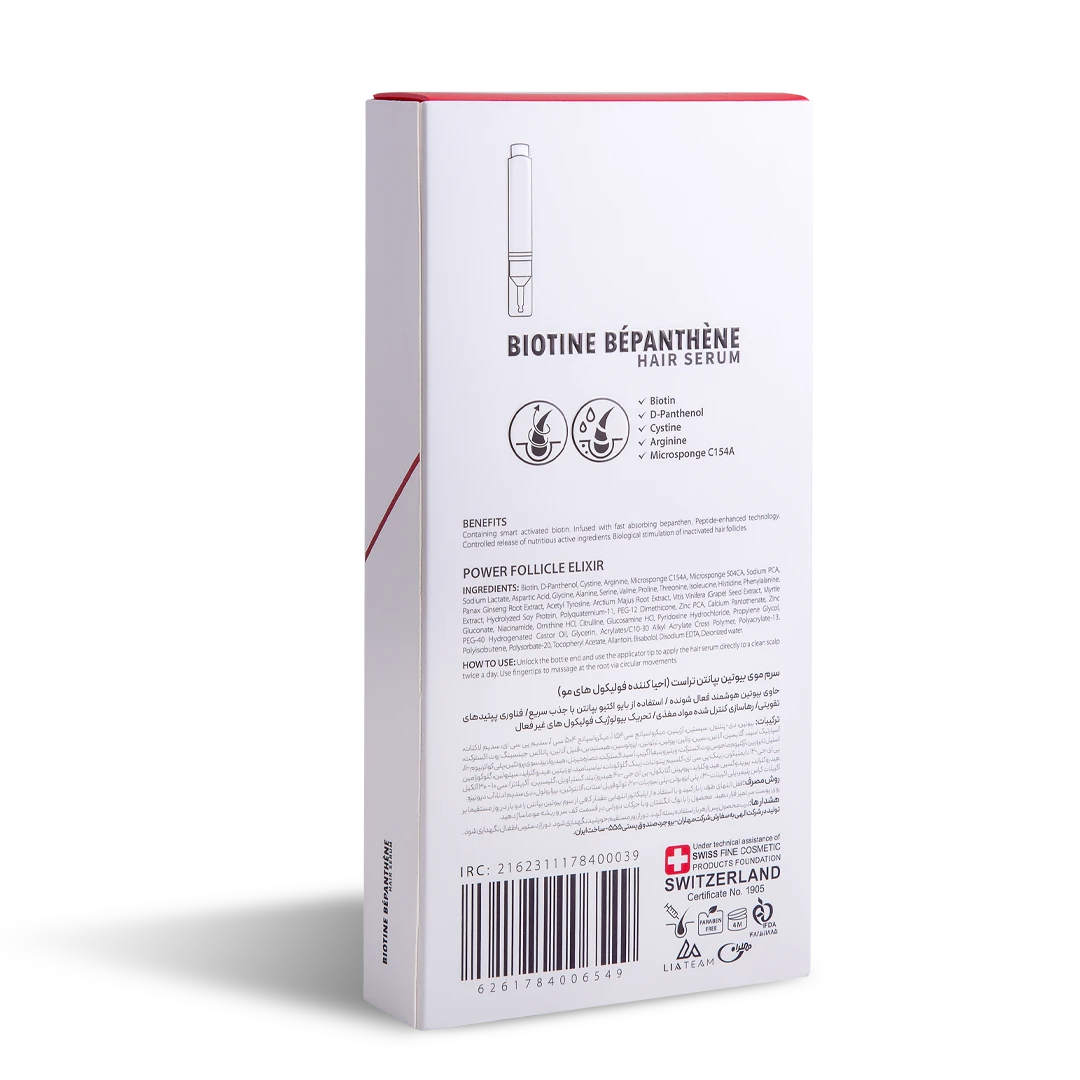 | نحوه مصرف | قفل انتهای ظرف را باز کنید و با استفاده از اپلیکاتور انتهایی مقدار کافی از سرم بیوتین بپانتن را دو بار در روز مستقیما بر روی پوست سر تمیز قرار دهید. محصول را با نوک انگشتان و با حرکات دورانی در قسمت کف سر و ریشه مو ماساژ دهید. |