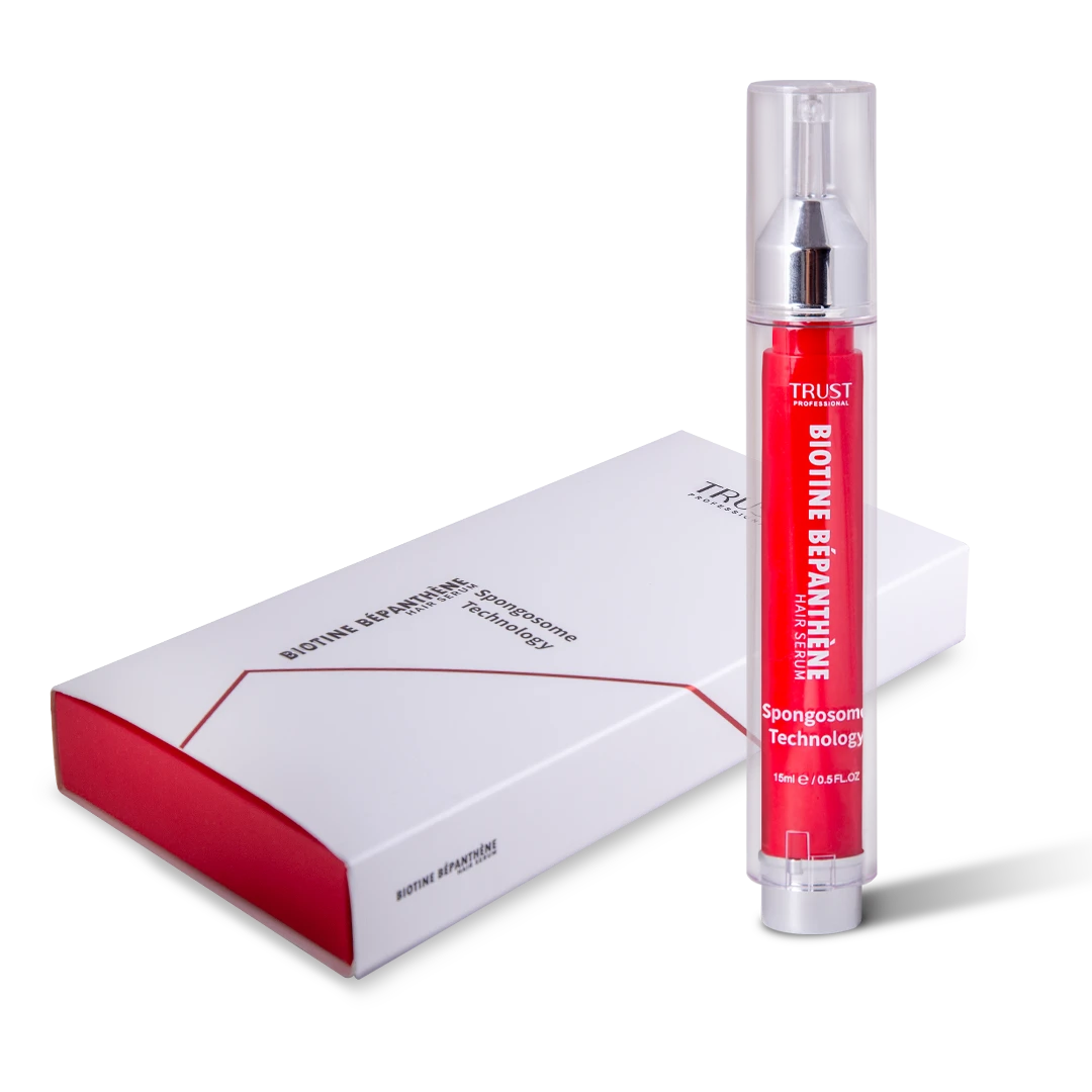 داشتن موهایی زیبا و سالم در گرو مراقبت صحیح و تقویت موها با استفاده از محصولات آبرسان و تقویت کننده رشد مو است. بنابراین استفاده از محصولات تقویت کننده رشد مو میبایست قسمتی از روتین مراقبتی روزانه شما باشد. برای مثال یکی از مهمترین مزیتهای سرمهای تقویت کننده مو، آبرسانی سلولهای کف سر و تغذیه فولیکولهای مو با ویتامینها و ترکیبات موثره بهبود دهنده رشد مو است. این ترکیبات عملکرد موثری در کاهش یا توقف ریزش موها دارند و با افزایش خونرسانی و آبرسانی سلولها، به ساخت سلولهای جدید و حفظ سلامت پوست سر کمک میکنند. به همین دلیل سرم بیوتین بپانتن تراست به عنوان یکی از جدیدترین محصولات مراقبت از مو در راستای مراقبت از سلامت موها و پوست سر فرموله شده است. این محصول با بهرهگیری از ترکیبات موثره هوشمند بیوتین و بپانتن با قابلیت رهاسازی کنترل شده و با استفاده از تکنولوژی انتقالی اسپانجوزوم، به طور موثر و متفاوت با سایر محصولات، به داخل پوست سر نفوذ کرده و با فعال کردن مجدد فولیکولهای غیرفعال، به رویش مجدد موها و حفظ استحکام فولیکولهای مو کمک میکند.
