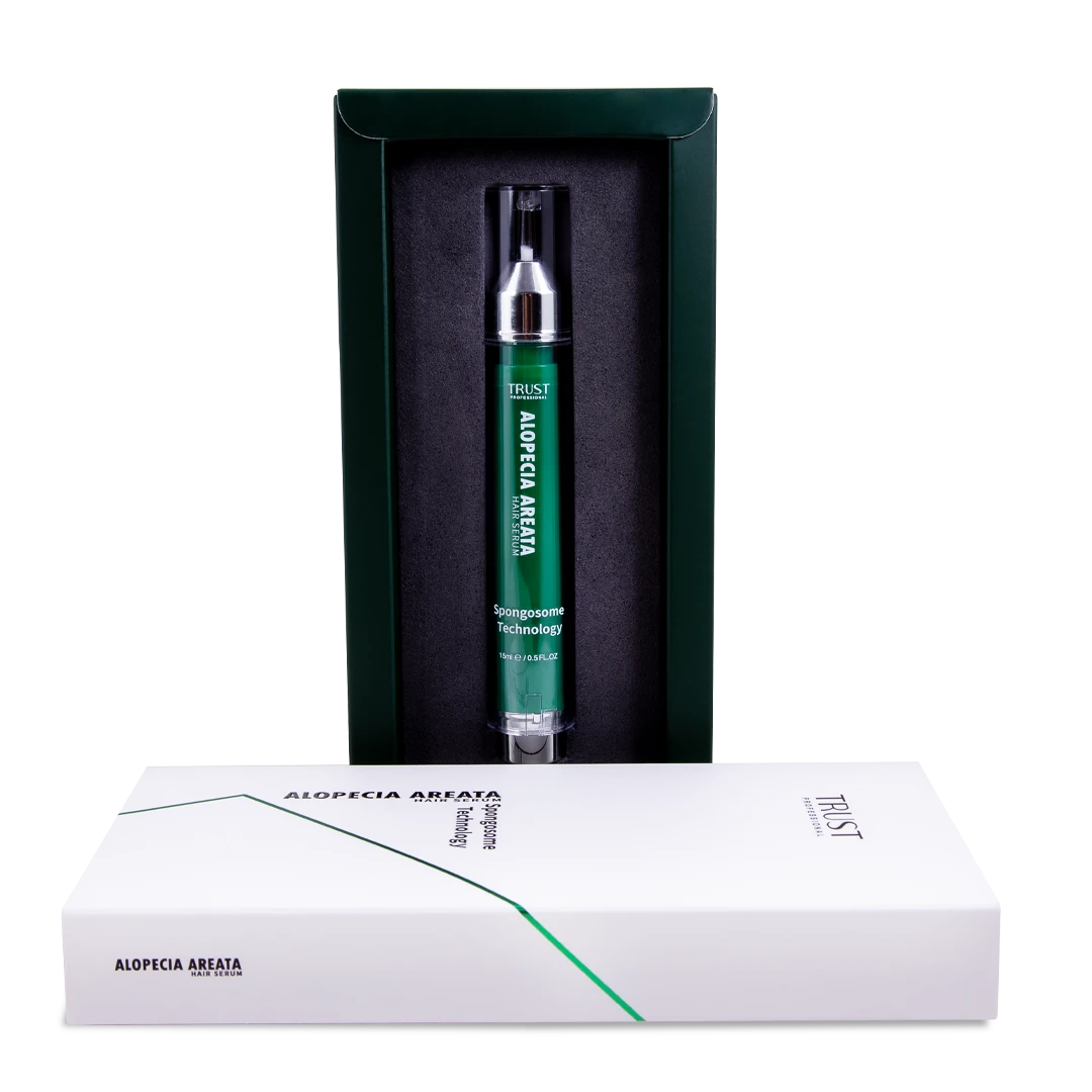 ریزش سکهای بیماری است که به دلیل نقص سیستم ایمنی ایجاد شده و منجر به ریزش موها در نواحی مختلف بدن به ویژه در ناحیه سر و صورت از جمله ریش و سبیل میشود. ریزش سکهای همانطور که از نام آن مشخص است در نواحی کوچک و به صورت سکهای ایجاد شده و ممکن است به فرم خفیف تا پیشرفته افراد مختلف را درگیر کند. بهبود بیماری و برطرف شدن علایم در افراد مختلف متفاوت است و به شدت بیماری و نوع محصولات مراقبتی مورد استفاده بستگی دارد. یکی از راهکارهای اصلی برای بهبود علایم ریزش سکهای و بهبود ریزش مو استفاده از محصولات مراقبتی و سرمهایی است که به رشد مجدد موها کمک کرده و از پیشرفت ریزش مو جلوگیری میکنند. سرم بهبود دهنده ریزش موی سکهای تراست، با دارا بودن تکنولوژی منحصر به فرد اسپانجوزوم، به طور موثری نفوذ ترکیبات موثره ضد التهاب و محرک رویش مجدد فولیکولهای مو را به سلولهای پوست سر افزایش داده و به طور چشمگیری موجب بهبود رشد فولیکول و تحریک رشد موها در این ناحیه میشود. این محصول فاقد ماینوکسیدیل و الکل بوده و ترکیبات موثره مورد استفاده در آن، فولیکولهای مو را تغذیه و خونرسانی کرده و با ترمیم فولیکولهای آسیب دیده، به از بین بردن و بهبود ریزش سکهای مو کمک میکنند.