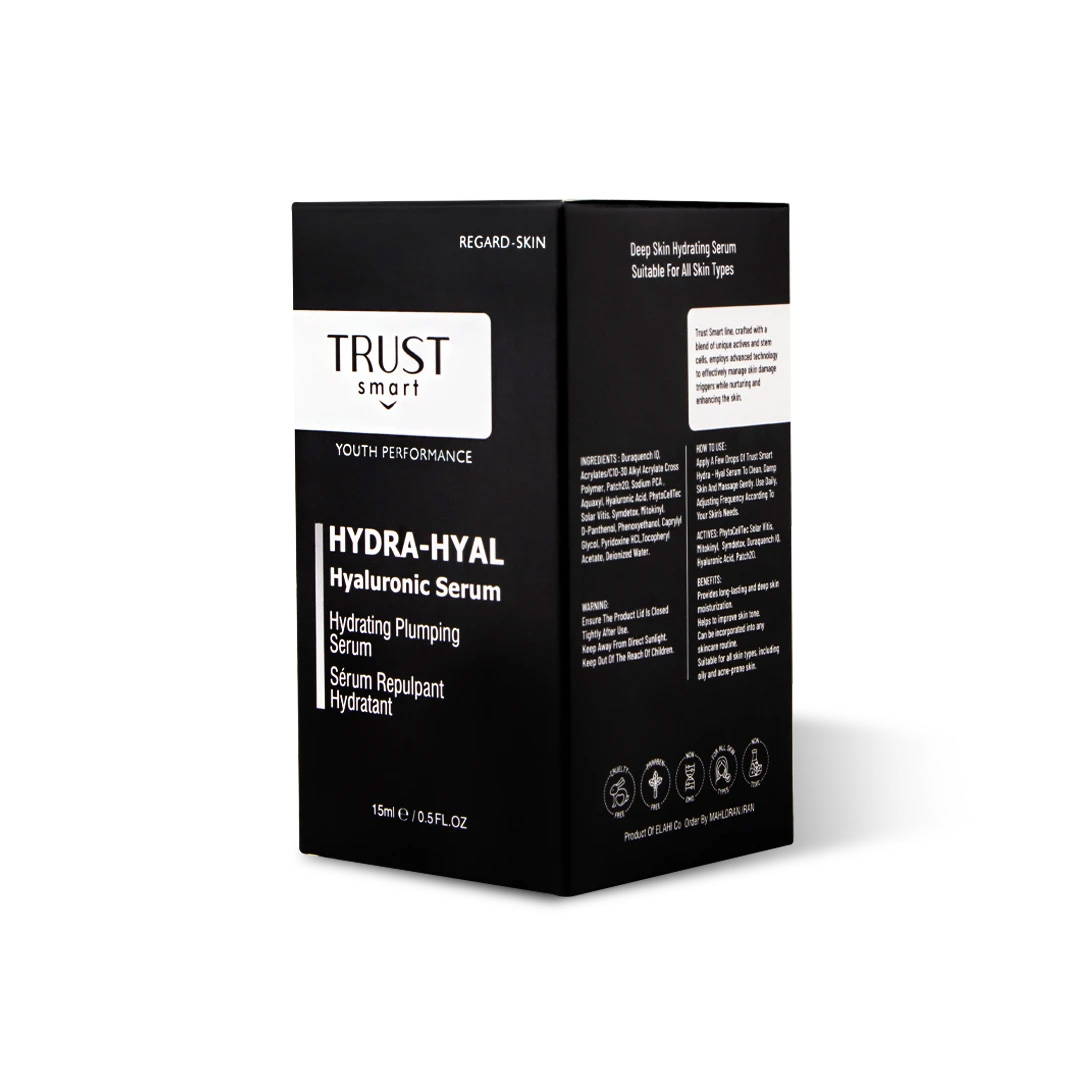 هیالورونیکاسید یا سدیم هیالورونات پلیساکاریدی است که به صورت طبیعی در بدن ما وجود دارد و یکی از ترکیبات اصلی تشکیل دهندهی ماتریکس خارج سلولی است. این ترکیب با توانایی نگه داشتن ملکولهای آب با ظرفیت چندین برابر بیشتر از وزن ملکولی خود، سلولهای پوستی را آبرسانی میکند. هیالورونیکاسید اتصال فیبرهای کلاژن و الاستین در پوست را استحکام میبخشد و به این ترتیب از پیری و ایجاد چین و چروک در پوست جلوگیری میکند. بنابراین هیالورونیکاسید مورد استفاده در سرم آبرسان اسمارت تراست، با تقویت سد دفاعی و حفظ رطوبت پوست، از پیری پوست جلوگیری میکند.