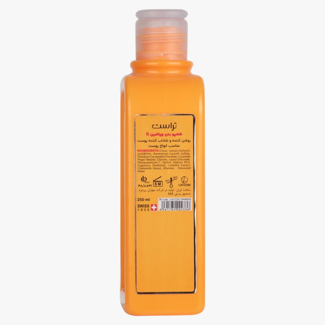 شامپو بدن ویتامین سی تراست، حاوی عصاره مرکبات و ویتامین C است که ضمن آبرسانی باعث کوچک شدن منافذ پوست و تقویت و درخشان شدن آن میشود. BHA موجود در این شامپو بدن، پوستهای مستعد جوش و آکنه را پاکسازی میکند. در نتیجه، پوست روشن و جوان میشود.