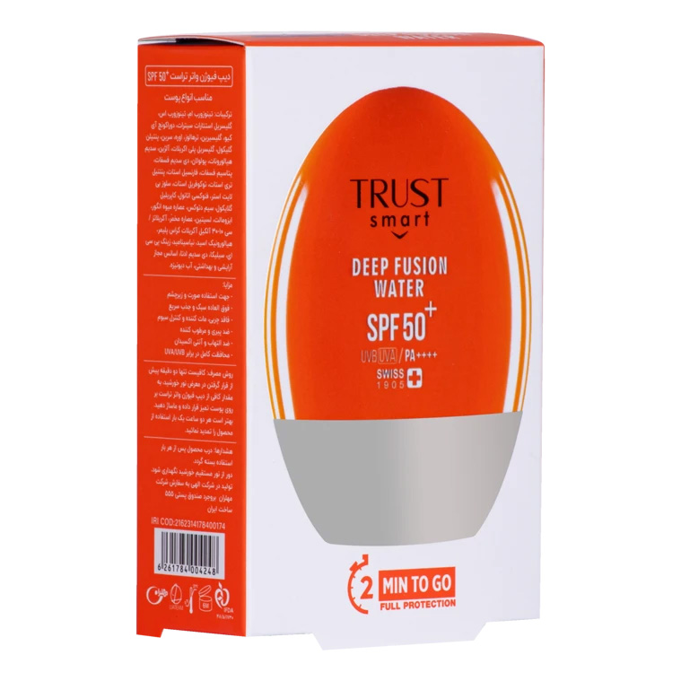 | نحوه مصرف | کافیست 2 دقیقه قبل از قرارگرفتن در معرض نور خورشید به مقدار کافی از دیپ فیوژن واتر تراست بر روی پوست تمیز قرارداده و ماساژ دهید. بهتر هست هر دو ساعت یک بار استفاده از محصول را تمدید نمایید. |