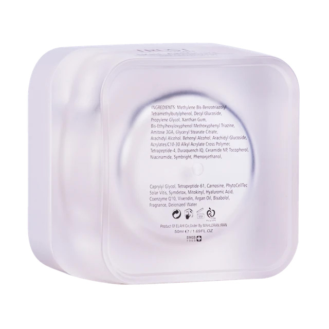 - افزایش استحکام پوست و رفع چین و چروکهای پوستی با داشتن ترکیبات فعال پپتیدی تتراپپتاید-۴، تتراپپتاید-۶۱، سرامید NP، هیالورونیکاسید و توکوفرول