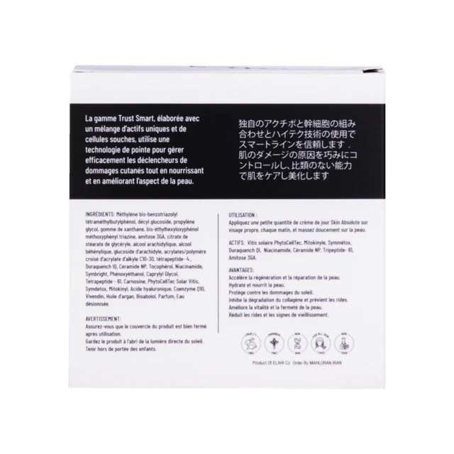 | نحوه مصرف | روزانه کرم روز تراست اسمارت را به دفعات مورد نیاز بر روی پوست کاملا تمیز قرار داده و به آرامی ماساژ دهید تا جذب شود. |