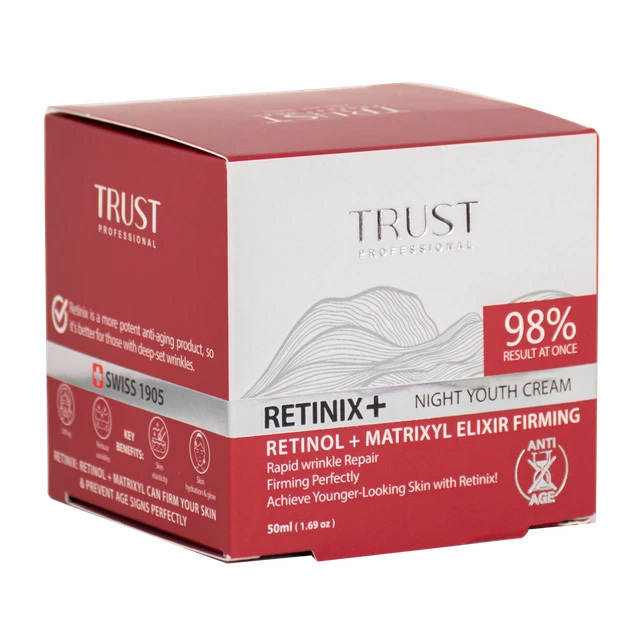 و در نهایت، آملیوکس موجود در کرم جوانساز رتینول تراست، با جلوگیری از تأثیر پرتوهای مضر UV و با خواص آنتیاکسیدانی ویژهای که دارد، چینوچروکهای پوستی را بهبود بخشیده و از شکستن و تغییر فرو پروتئین کلاژن و نیز پیری پوست جلوگیری میکند. در کنار مواد مؤثره مطرحشده، این محصول تراست، با عصاره دانه لوپینوس آلبوس، به حفظ استحکام و افزایش خاصیت کشسانی پوست، با لایزین آسپارتات، به بهبود سوختوساز سلولهای پوستی و تکثیر آنها، با روغن آووکادو، به حفظ استحکام و پایداری پوست و با هلیانتوس آنوس سید اویل، به بهبود آبرسانی و جلوگیری از پیری پوست، کمک میکند.
